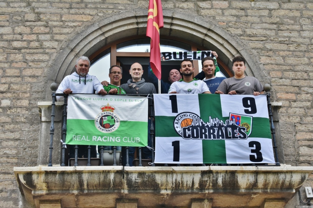 El racinguismo quería que se sumara a ese deseo un Ayuntamiento que ha abierto sus puertas de par en par, mostrando las enseñas en el balcón de Alcaldía, la del Racing y la de la peña local, Brigadas Buelna. Un colectivo que según su máximo exponente, Ángel Díaz 'Lin', agrupa vecinos de toda la comarca "y creíamos que era importante que el Racing estuviese presente en todos los municipios y más en uno importante como este, que cuenta con más de 130 socios del equipo". Le acompañaron a la hora de colocar las banderas otros miembros de la peña.