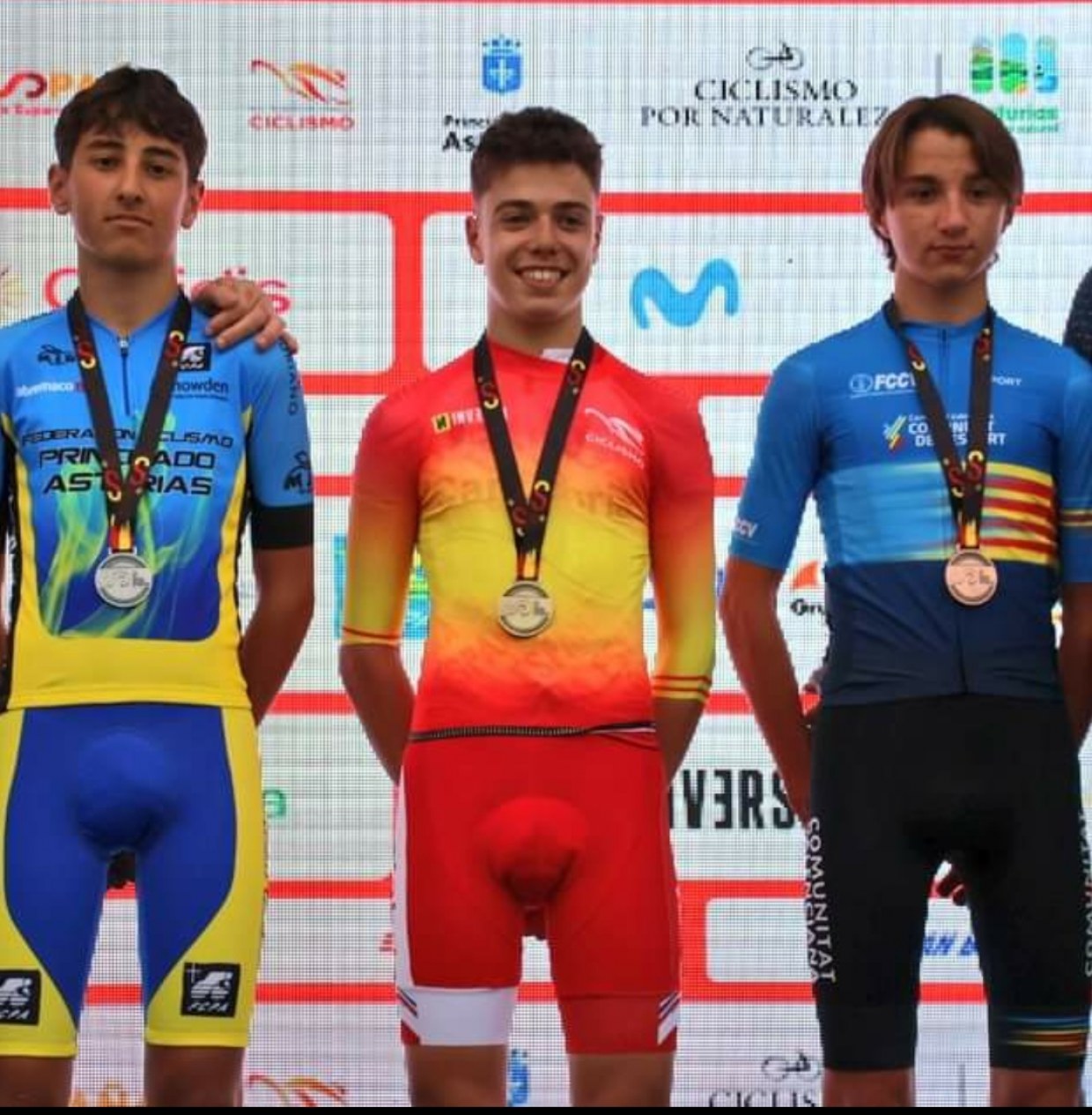 El ciclista de Arenas de Iguña conquistó tres metales en los nacionales escolares de ciclismo. Cantabria tuvo una cosecha total de seis medallas