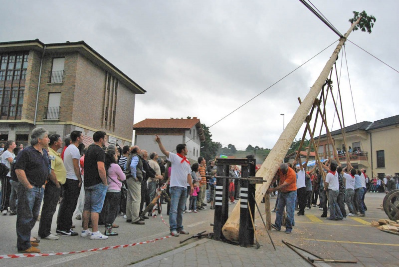 Los vecinos de Silió, en el municipio de Molledo, dejaron patente un año más su interés por recuperar las tradiciones ancestrales de la villa, y lo hicieron con la puesta en escena de una vieja usanza, el Izado de la Maya. Con más esfuerzo que en otras ocasiones por la presencia de una invitada especial, la lluvia, lograron poner en pie a golpe de riñón dos robles unidos que juntos alcanzan los 30 metros de altura. A ratos empujando, cuando amainaba, a ratos esperando, cuando arreciaba. Pero al final el hombre se impuso y la Maya ya ejerce de mástil en la plaza principal del pueblo. Es una fiesta en la que participan todos los habitantes del pueblo aunque son unos 40 jóvenes los que levantan la Maya a pulso. Y como siempre, la plaza de Santiago congregó, dentro de las fiestas locales en honor al Patrón de España, a cientos de personas que, asombrados, comprobaron como los jóvenes del pueblo levantaban, utilizando mecanismos tradicionales y la fuerza de sus brazos, la Maya y la Añadición, los dos mejores troncos de roble del monte Canales cortados hace apenas una semana y unidos para la ocasión. Dos de los vecinos con más experiencia, Joaquín Fernández Diego y Alberto Villegas, los dos concejales del Ayuntamiento de Molledo y miembros de la Junta Vecinal de Silió, dirigieron las operaciones, mandando tensar las cuerdas, adelantar las horcas que alzaban la Maya, parar y volver a arrancar. Ambos se habían ocupado, con la ayuda y consejo de los mayores, de preparar las cuerdas y poleas que ayudaron a los mozos en el esfuerzo de poner en pie la maya. Algo más de una hora fue necesaria para poner en pie un símbolo que preside ya la plaza de Santiago, y así lo hará durante buena parte del verano. Los aplausos y cohetes pusieron punto final a una tradición que recuerda la actividad maderera y religiosa de la zona hace siglos. En las caras de los esforzados jóvenes cansancio y satisfacción, caras reconocibles para los muchos cántabros que cada primer domingo del año vuelven a Silió, para disfrutar de otra tradición aún más antigua, quizá, La Vijanera.