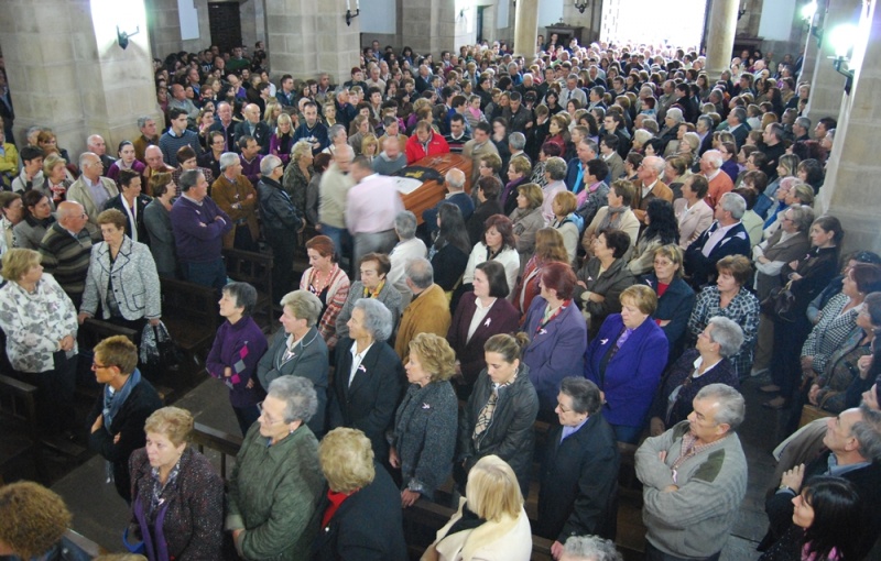 El pueblo de Los Corrales de Buelna se echó a la calle ayer para dar el último adiós a la joven Almudena Ruiz en un funeral multitudinario y emotivo como se recuerdan pocos en la localidad. Miles de personas arroparon a la familia, demostrando la huella que ha dejado la presidenta de la Junta Local de la Asociación Española contra el Cáncer y miembro de la junta directiva de la asociación en Cantabria. Muchas personas portaban el lazo rosa que ella hizo popular en la comarca por su lucha constante contra el cáncer de mama, su enemigo particular. Otras muchas anudaron un pañuelo de igual color al cuello. Y la gran iglesia parroquial de Los Corrales de Buelna se quedó pequeña. Media hora antes de iniciar el funeral los más de 500 asientos ya estaban ocupados, a excepción de los delanteros, reservados para la familia. Bancos que estaban flanqueados a un lado por las directivas de la asociación contra el cáncer en Cantabria y Los Corrales de Buelna. Al otro por un gran lazo rosa, colgado del púlpito, el mismo que cada 19 de octubre preside la avenida principal de la localidad. En esa media hora previa no se oyó un alma. Solo el ruido de las puertas de la mucha gente que quería acceder al templo. Apenas se podía. Allí estaban representantes de todos los sectores, de todos los ámbitos, vecinos de todas las edades, muchos jóvenes, compañeros, amigos de Almudena. La llegada del féretro fue seguida de una gran procesión proveniente del Tanatorio Municipal. Decenas de vehículos en una comitiva que hizo intervenir a la Policía Local para regular el tráfico. El coche fúnebre paró ante un cordón enorme de ramos, centros y coronas de flores. Y poco antes de las cuatro de la tarde comenzó a llover con intensidad. Aún así no se movió nadie. Los alrededores de la iglesia estaban también abarrotados. Millares de personas, como ya habían hecho en los días previos, durante esa misma mañana, quisieron acompañar a la familia, expresar su dolor y su cariño. La Coral de Los Corrales de Buelna, de gala, lazo rosa en la solapa, puso la música. Solo otro sonido acompañó el final del funeral, un fuerte aplauso de cuantos asistieron. Desde ahí, la familia, ya más en la intimidad, se trasladó al cementerio de Hijas, para dar cristiana sepultura a Almudena.