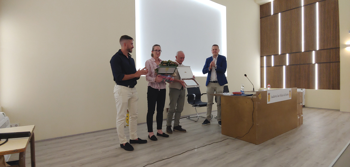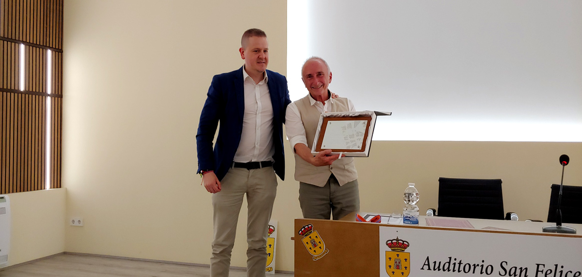 Antes de terminar y para sorpresa del autor del libro, Cobo González intervino para explicar que el Ayuntamiento aprovechaba para reconocer a Federico Crespo como `Cronista Oficial de San Felices´ y entregarle una placa acreditativa. Resultó un momento aún más emotivo por la presencia añadida sobre el escenario de su esposa y uno de sus hijos.