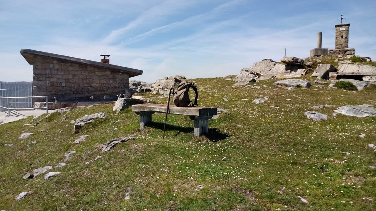 El banco más bonito del mundo es una traviesa de la vía anclada a la Garita de Collado, y la fría brisa que viene del Cantábrico no alberga sino ambiciones de horizontes grises, de olas espesas, y rizosas yuntas de bueyes marinos. Así, emparejadas oleadas de burbujas, llegan a mi trono en la montaña.