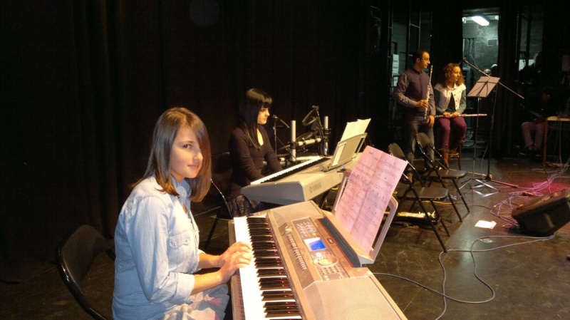 La Escuela de Musica de Los Corrales de Buelna fue la encargada de abrir el concierto benéfico del día 28 de enero. Comenzaron con una pieza de Johann Strauss II, conocido compositor austríaco por sus valses como el Danubio Azul y también por sus polcas, marchas y operetas como el Murciélago. Un fragmento de esta opereta sonó interpretado por Silvia y Sofía. Esta pieza está preparada para tocar en piano a cuatro manos, pero las circunstancias obligaron a hacerlo en dos teclados.