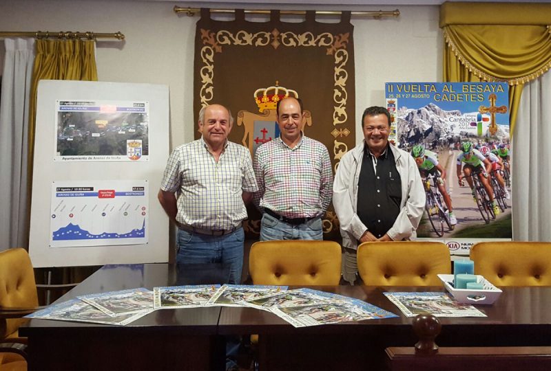 El salón de plenos del Ayuntamiento de Arenas de Iguña sirvió de escenario para la presentación de la etapa que cerrará este año la segunda edición de la Vuelta Ciclista al Besaya para cadetes, que se desarrollará del 25 al 27 de agosto. La tercera etapa se disputará el último día y partirá de Arenas de Iguña para terminar en Bostronizo, premio especial Cima Pepín Collantes. En la presentación estuvieron el alcalde de Arenas de Iguña, Pablo Gómez, el director técnico de la prueba, Fernando Ateca, y el organizador, José Antonio Mantilla. Serán prácticamente 58 kilómetros a través de los valles de Iguña y Buelna para terminar en un duro puerto con llegada en lo alto de Bostronizo.