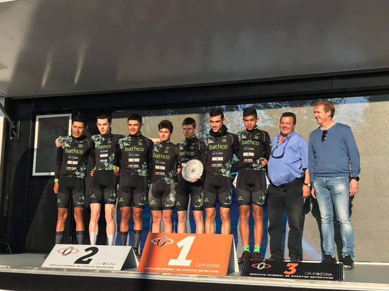 La maquinaria bien engrasada del Bathco Cycling junior rozó este sábado el triunfo en la contrarreloj por equipos de 6 kilómetros del 5º Trofeo Víctor Cabedo, disputada entre las localidades de Vila y Real. Juan Ayuso, Will Ryan, Alejandro Rojas y Héctor Quintana, se convirtió en el cuarteto que atravesó la meta en 7,16, dando tiempo al equipo y colocándole en el segundo puesto final al término de la 3ª etapa de la prueba castellonense. El levantino, Juan Ayuso, sigue como 5º en la general individual , a 2,31 del líder del Kometa, Javier Serrano. Ayuso comanda la clasificación de la montaña, general de sprint especiales y la de ciclistas de primer año, a la espera de la última etapa de Copa de España de este domingo.
