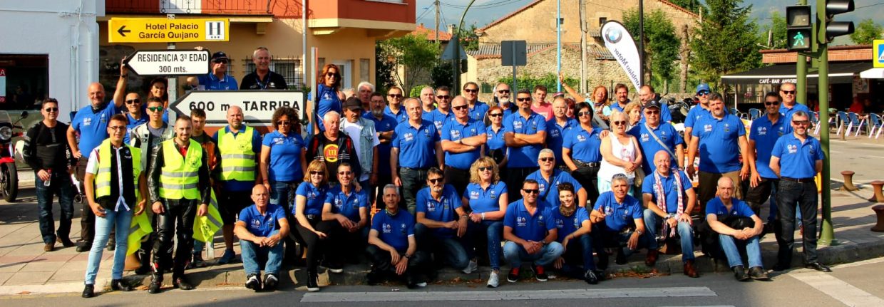 8:45 Horas de la mañana. Las primeros participantes llegaban al aparcamiento que teníamos reservado y desde donde poco más tarde partiríamos para realizar la tan esperada ruta. La temperatura era algo fresca pero muy agradable. La luz del sol a esa hora era cálida y proporcionaba gran belleza añadida. El tiempo prometía un día perfecto para ir en moto. A las 9:00 h todos los participantes estaban junto a sus correspondientes motos luciendo orgullosamente el nuevo y flamante polo azul con el logo bordado del evento. Y por fin, tras la foto de grupo dimos comienzo a la aventura: salimos detrás de nuestro guía Ramón que iba con su K1 de color rojo y amarilla para realizar una preciosa ruta turística por el corazón de la “Verde” Cantabria. Descubrimos sus extraordinarios valles y sus bellas montañas, sus mágicos ríos y sus aldeas cargadas de historia. La primera parada se realizó en uno de los pueblos más antiguos de Cantabria: Bárcena Mayor. Presume de Conjunto Histórico Artístico desde 1979 el cual es el único núcleo urbano asentado dentro del Parque Natural Saja-Besaya y además forma parte de la Asociación de Pueblos más bonitos de España, desde 2015. Aprovechando de que previamente la Sra. Alcaldesa, nos había concedido amablemente el permiso para entrar y aparcar con nuestras motos clásicas en el aparcamiento situado dentro del pueblo, asistimos con gran interés a la visita guiada, donde nos tomamos un tentempié y finalmente continuamos con nuestra ruta.