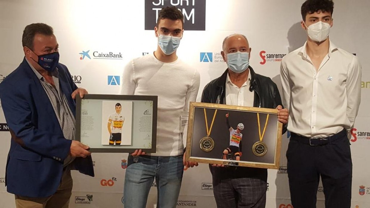 El joven, proclamado doble campeón de España Junior, recibió el homenaje de su equipo y patrocinadores, quienes dedicaron unas palabras al alicantino para despedir su paso por la formación cántabra, ya que el próximo año se incorporará al circuito profesional de la mano del UAE Team Emirates.