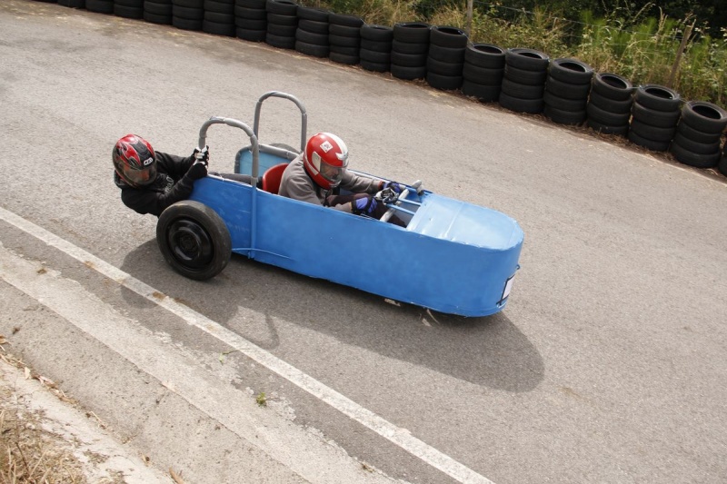 Acabada la competición federada, la particular carrera de las peñas se disputó en dos mangas, al mejor tiempo logrado en cualquier de ellas. El recorrido era el previsto, situado en la parte baja de Barrio de La Contrina, resultando muy cómodo para el numeroso público presente desplazarse desde el recorrido anterior a este último. Si bien en la primera reinaba el buen humor y primaban las ganas de divertirse y dar espectáculo, una vez que los pilotos conocieron los tiempos que habían logrado y viendo que había 6 vehículos metidos en menos de 5 segundos de diferencia, los nervios y la emoción de ganaron la partida, haciendo que pilotos y máquinas se entregaran a fondo. Al final, con un tiempo de 18,1" la peña Los Colgados impuso su mejor tiempo, sólo 5 décimas por delante del `Pasquali´de la Peña Dickens Tavern.