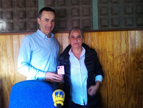 Juan Carlos, gerente de Fricor, y Mireya, ganadora del premio de la segunda semana.