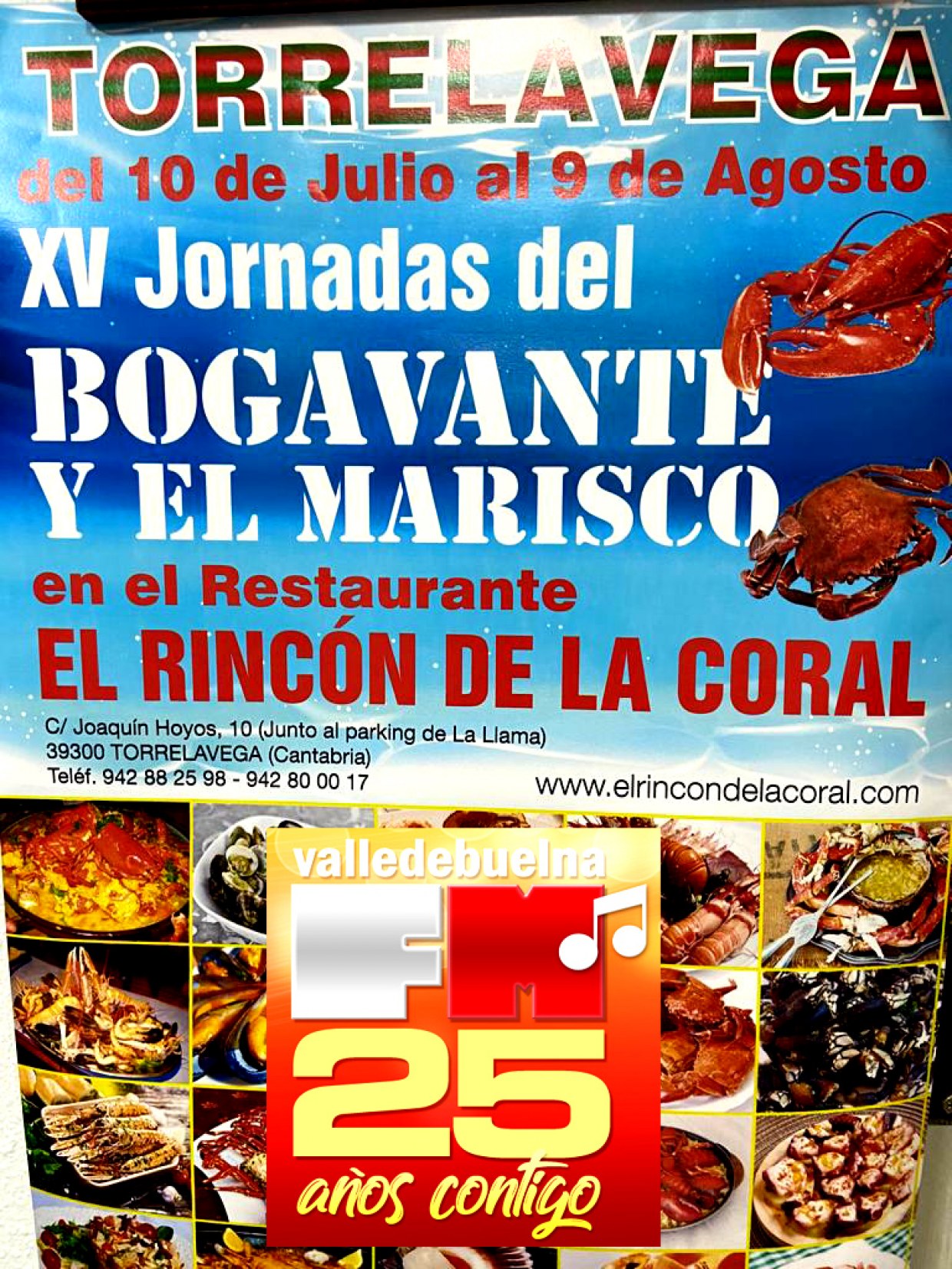 Con motivo de la XV edición de sus Jornadas Gastronómicas del Bogavante y el Marisco, el restaurante de Torrelavega El Rincón de la Coral, y muy especialmente Manolo Blanco y sus hijos, quieren premiar a los oyentes de nuestra emisora y animarles en el relanzamiento económico y anímico que tanto necesitamos. Las jornadas ya están activas y durarán hasta el 8 de agosto. Se ofrecen a precios populares nécoras, navajas, percebes, gambón, pulpo… y especialidades de la casa como albóndigas, ensalada o arroz… con bogavante. Si lo prefiere bogavante cocido o plancha o la tradicional mariscada completa.