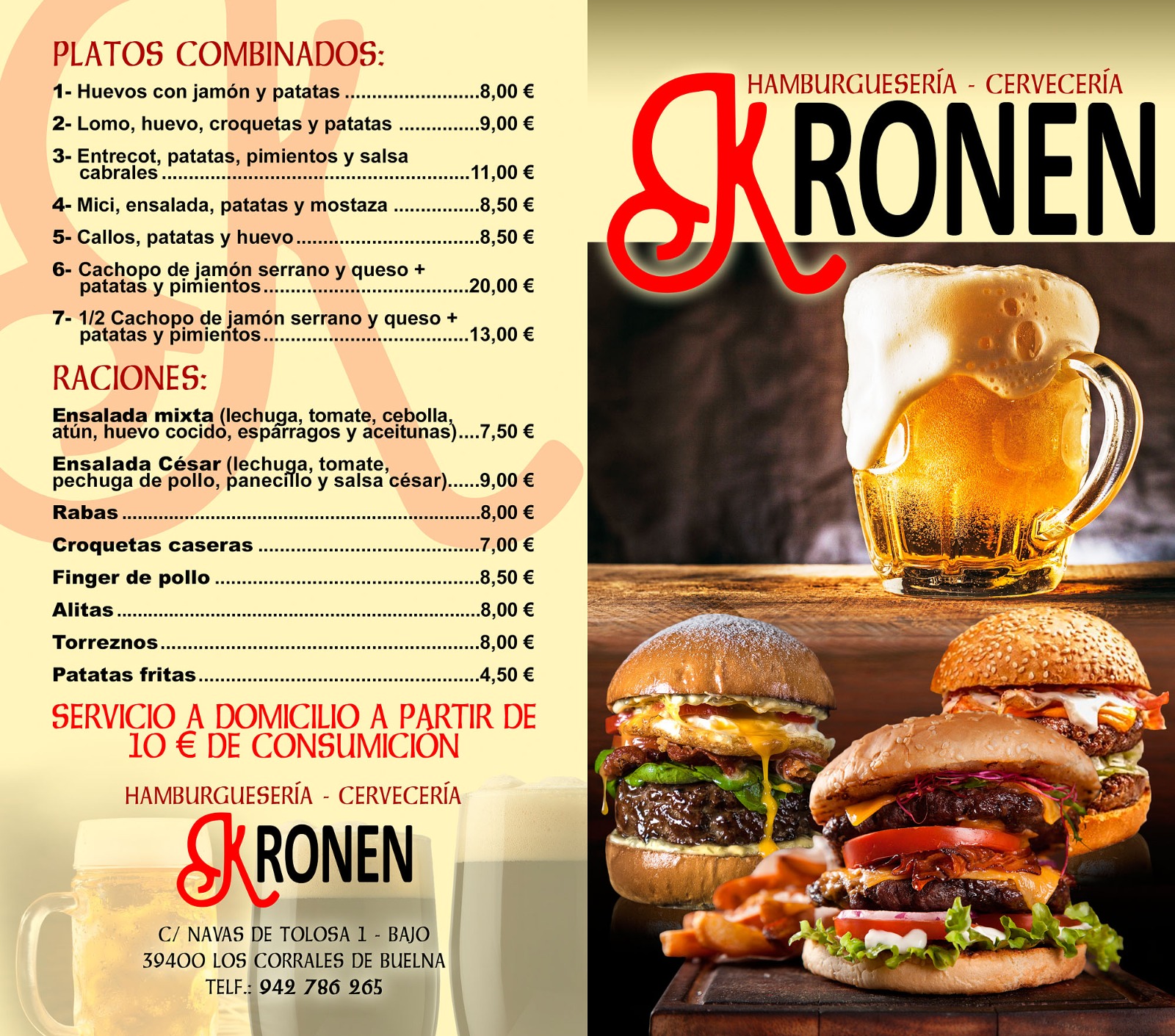 Carta de Hamburguesería Kronen (Tno. 942 78 62 65)
