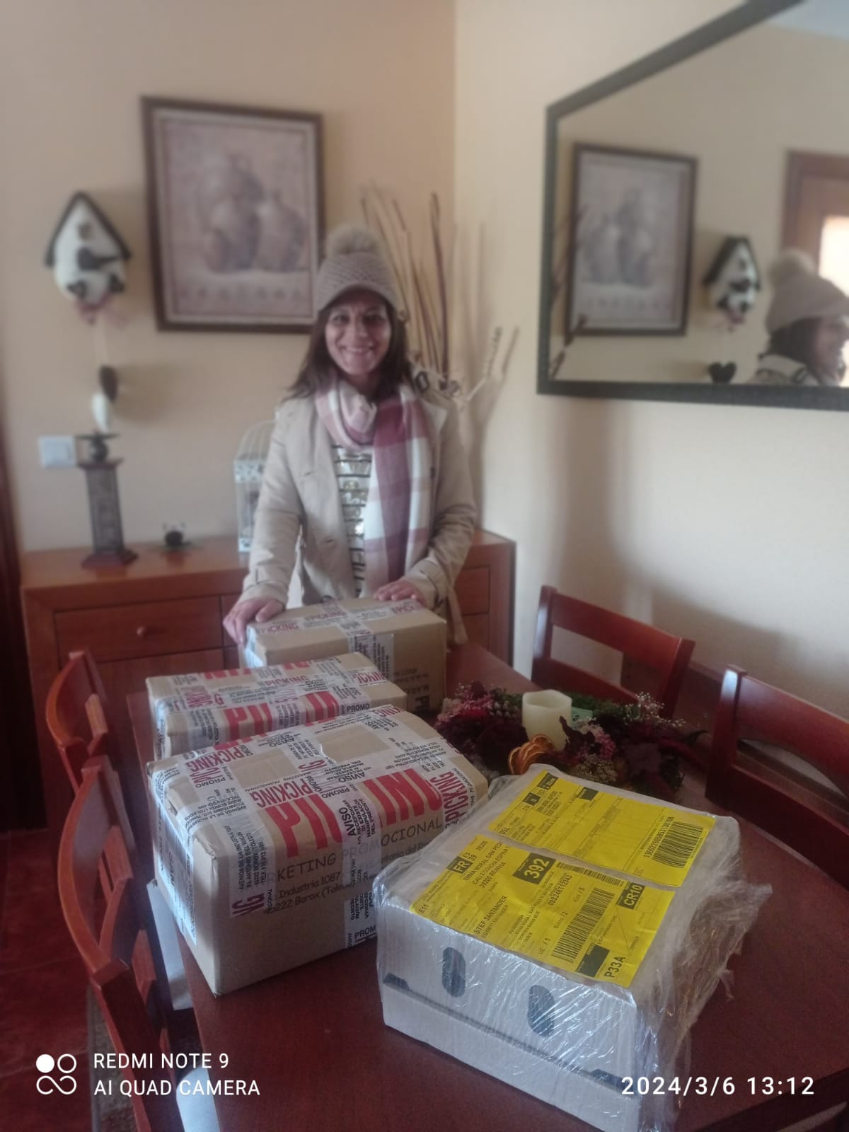 Emma Moral, la ganadora del lote de febrero junto a su premio: