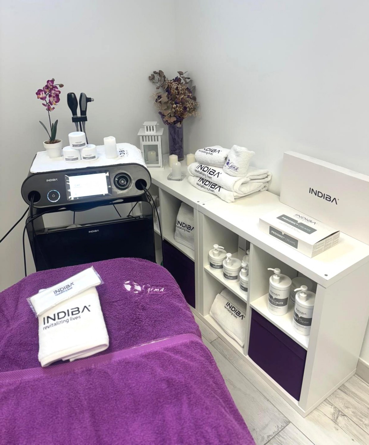 El Centro de Belleza y Masajes Gema tiene el privilegio de contar con la última aparatologia de Indiba, la más potente en el mundo de la belleza. Este tratamiento emite calor por radiofrecuencia para elevar la temperatura interna del cuerpo y conseguir un efecto regenerador.
