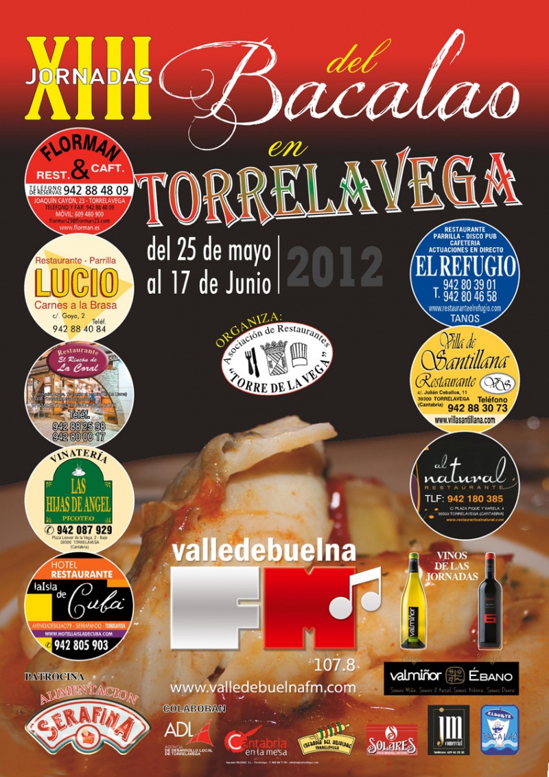 ¡Volvemos a jugar! Ahora podrás participar y ganar comidas o cenas para dos personas. Coincidiendo con las Jornadas Bacalao, del 25 de mayo al 17 de junio, la Asociación de Restaurantes Torre de la Vega, patrocina este juego. Contamos en esta ocasión con los restaurantes Villa de Santillana, Las Hijas de Ángel, Lucio, Florman, El Rincón de la Coral, El Refugio, La Isla de Cuba y Al Natural.