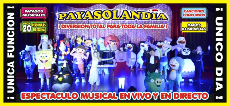 La compañía que se formó en 1999 ha visitado los mejores escenarios de toda España y se les consicera pioneros de este formato. Presentan un show de 90 minuto con más de 20 personajes en escena con canciones, concursos, humor e ilusiuonismo. Algunos de sus `personajes vivientes´son King-fu Panda, Angry Birds, Doraemon, Monster High, etc.
