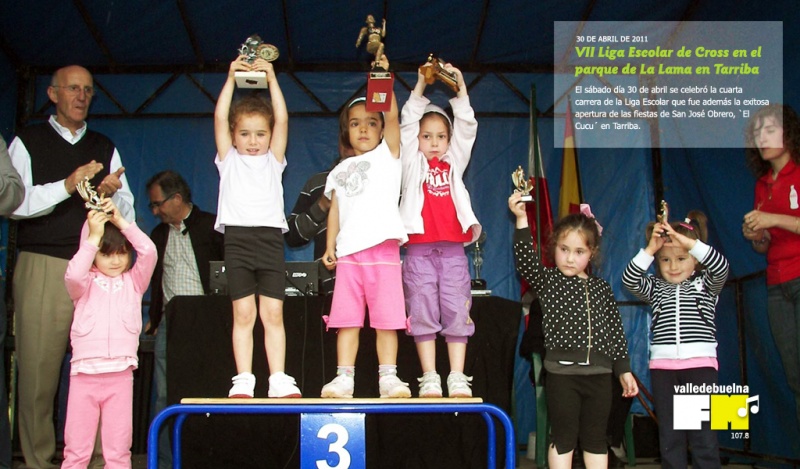 El sábado día 30 de abril se celebró la cuarta carrera de la Liga Escolar que fue además la exitosa apertura de las fiestas de San José Obrero, `El Cucu´ en Tarriba. El tiempo acompañó hasta casi las dos de la tarde y al menos las carreras de los atletas pudieron celebrarse con toda comodidad. Llegada esa hora y ya en la entrega de trofeosla lluvia hizo acto de presencia.