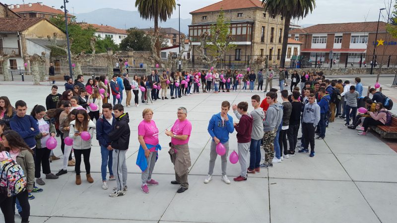 Un centenar de personas se ha unido en Los Corrales de Buelna para dar forma a un gran lazo humano, conmemorando el Día Internacional contra el Cáncer de Mama. La junta local de la Asociación Española Contra el Cáncer había convocado a cuantos quisiera participar en un evento que contó con el apoyo de los IES Estelas y Orbe Cano y el colegio La Salle, además de representantes de distintos colectivos del municipio.