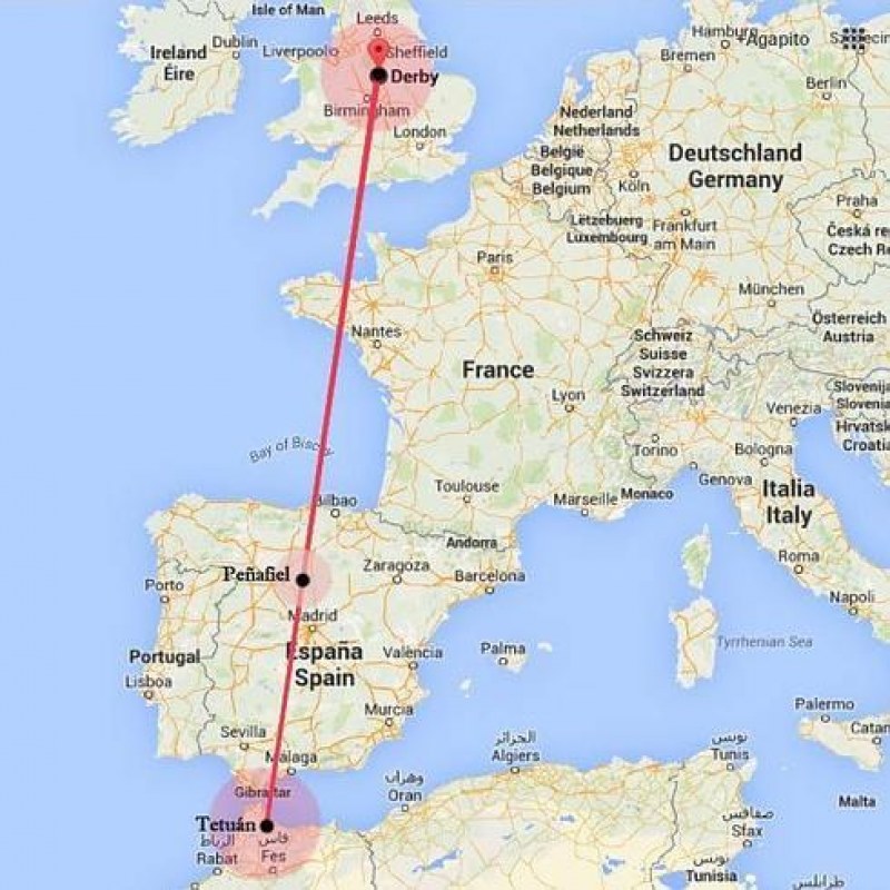 La ruidosa aeronave, de gran envergadura, inicia su periplo peninsular por nuestra región, despega desde el aeropuerto inglés de Derby, y finaliza en el de Martil Sania, en Tetuán (Marruecos), siguiendo un corredor norte-sur, con todos los papeles en regla y con el indicativo CVK7001.