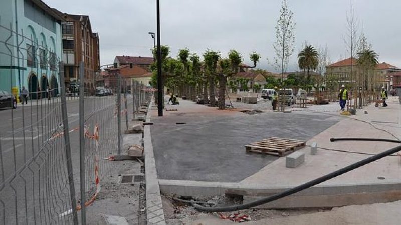Serviliano González explicó que la empresa ya ha solicitado formalmente una prórroga de dos meses para el remate de un proyecto que estaba previsto terminar a finales del mes de mayo. Señaló que a lo largo de esta semana se rematará el suelo de la nueva calle Constitución (peatonal) hasta la Avenida Cantabria y calle Campoo, y este viernes se decidirá la textura y color definitivo de las grandes losas que llenarán el centro de la plaza, la última fase de reurbanización del centro de Los Corrales de Buelna.
