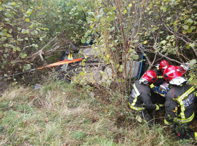 El conductor, único ocupante del turismo, ha perdido el control y ha caído unos seis metros por un talud, lo que le ha provocado aplastamiento de extremidad superior. El coche ha quedado volcado lateralmente sobre unos arbustos que han impedido que el descenso se prolongara unos 10 metros más.
