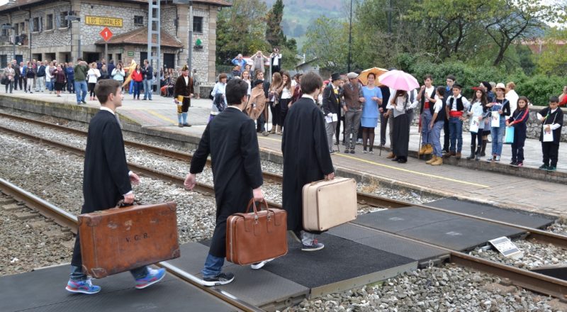 Los Corrales de Buelna volvió su mirada ayer al año 1890, al momento en el que tres hermanos de La Salle llegaban desde Cóbreces para poner en marcha un proyecto educativo que cumplió este viernes 125 años. Una veintena de personas, vestidos para la ocasión, recrearon la llegada en tren de los hermanos, con recepción incluida en la estación de Renfe de Los Corrales de Buelna. De ahí, la comitiva se trasladó a la estatua de San Juan Bautista, frente a uno de los bloques de un complejo educativo por el que han pasado más de 11.000 alumnos, 150 profesores y unos 200 hermanos lasalianos. En los distintos actos que recrearon ese día participaron cerca de un millar de alumnos, profesores y familiares, muchos portando ropas propias del siglo XIX.