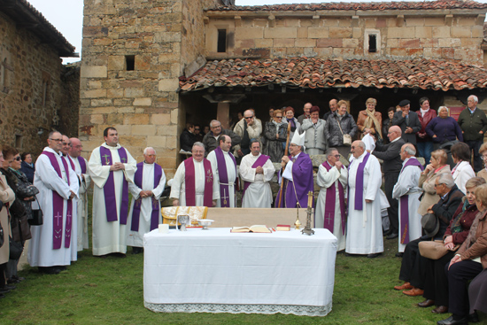 Presidida por el Obispo de la Diócesis de Santander, monseñor Manuel Sánchez Monge, y concelebrada por catorce sacerdotes más, entre ellos todos los del Valle de Buelna y el rector del Seminario de Corbán, junto a otros de Palencia y de Santander, en la tarde del miércoles, tuvo lugar en el exterior de la iglesia de Santa Cecilia del pueblo de Santa María de Nava, municipio de Barruelo de Santullán, del que era natural, una misa-funeral rebosante de emoción entre las muchas personas que acudieron a la misma para dar su último adiós al sacerdote y cura párroco de la iglesia de San Ramón en el Valle de Buelna, D. Acilino García Arto.