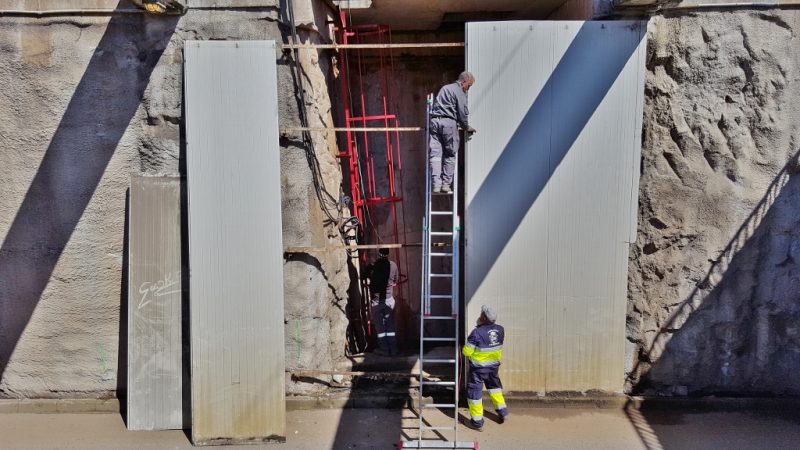 A lo largo de todo el mes se han ido retirando las placas que cubrían el túnel, para rematar las obras esta semana con la canalización de todo el cableado eléctrico que quedó al descubierto tras la retirada de los paneles metálicos, por parte de la empresa Ohmsa, mientras operarios municipales procedían a retirar las últimas cuatro placas que quedaban, las que cubrían el hueco de la bomba extractora de agua, con la intención de retranquearlos y volverlos a colocar a la altura de la pared.