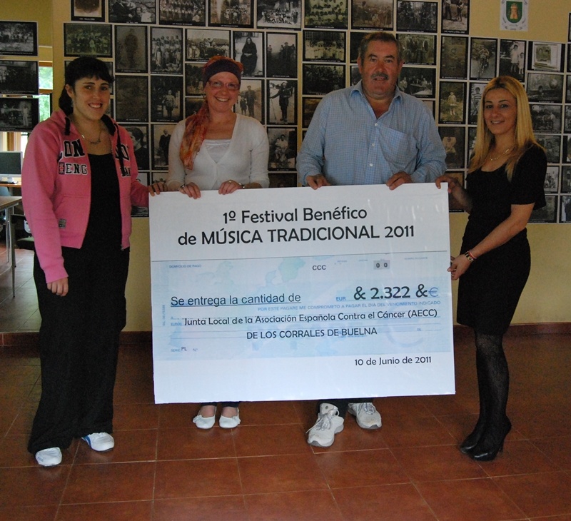 El primer festival benéfico de música tradicional celebrado en Cieza hace unos días recaudó 2.322 euros que, como se había anunciado, irán a parar a la Junta Local de la Asociación Española Contra el Cáncer de Los Corrales de Buelna. Organizado por el Centro Cívico de Cieza, con la colaboración del Ayuntamiento de Cieza y la propia Asociación Española contra el Cáncer de Los Corrales de Buelna, se celebró en la plaza del barrio de la Rueda, frente a la Casa Consistorial, y participaron más de 20 artistas cántabros. No faltaron actuaciones de música tradicional con panderetas, rabel, gaitas, grupos folk y teatro de marionetas a cargo del grupo 'Luz negra de Iguña'. La afluencia de público fue notable y todos colaboraron con el objetivo del festival. Un evento con un nombre muy concreto desde el primer momento. Y es que lo más llamativo fue la sorpresa que las colaboradoras habían reservado para la ocasión; todas pidieron a la presidenta de la Junta Local de la asociación en Los Corrales de Buelna, Almudena Ruiz, que les enseñara a tocarse elegantemente la cabeza con un pañuelo, en solidaridad con las personas que han de hacerlo forzadas por los efectos secundarios de los tratamientos oncológicos. Ana Belén Gómez Eguren, la responsable del Centro Cívico de Cieza, explicaba ayer mismo que la intención en un principio es que las mujeres que tenían que llevar ese pañuelo no llamaran la atención. Que todas estuvieran ataviadas de la misma forma. Pero el ejemplo cundió e incluso las artistas femeninas se colocaron el pañuelo. De ahí, lo de la 'Revolución de los pañuelos'. Almudena Ruiz reconoció que fue una sorpresa que la emocionó. Y apuntó en la recepción del cheque que la recaudación irá a parar a las actividades de la asociación local y a la Fundación de la Asociación Española Contra el Cáncer. En la entrega estuvo también el alcalde de Cieza, Agustín Saiz, junto a las organizadoras y la propia Almudena Ruiz.