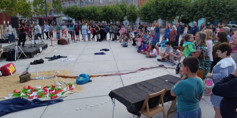 La plaza de la Constitución de Los Corrales de Buelna se convirtió en una playa improvisada, en un campo de refugiados, en un foro abierto donde los participantes expresaron distintas opiniones sobre la situación de las personas que están huyendo de los horrores de la guerra en sus hogares.