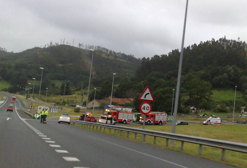 Pasadas las 19:00 del viernes 17 de junio ha volcado un camión de reparto de cerveza Heineken en la salida 172 de la autovía A67. Su conductor de 56 años, un conocido distribuidor de bebidas vecino de Somahoz, Casimiro Manteca Gómez, murió a consecuencia del accidente. El cadáver del fallecido fue trasladado al Anatómico Forense del Hospital Valdecilla de Santander. Para excarcelar el cuerpo del conductor fallecido fue necesaria la intervención de los bomberos del servicio 112. El carril que desciende para abandonar la autovía en dirección a la rotonda de el Manjón describe una curva de radio cerrado lo que obliga a tomarla muy despacio. Todo parace indicar que el conductor perdió el control del vehículo y volcó sobre su lado izquierdo.