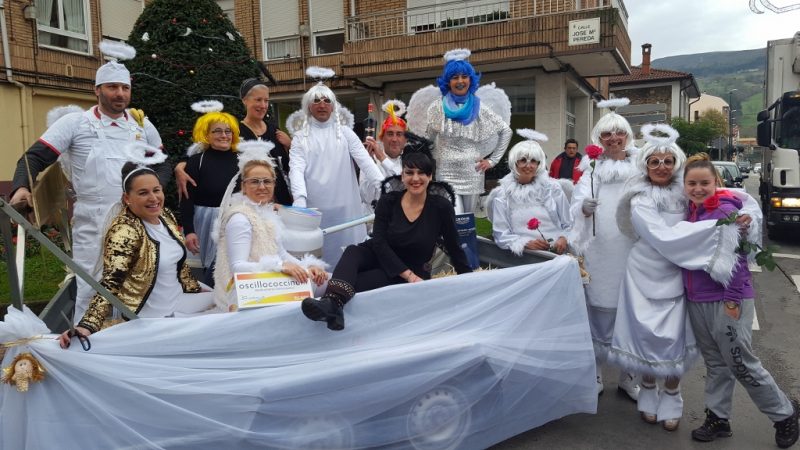 El comercio del barrio de La Aldea, en Los Corrales de Buelna, ha puesto al mal tiempo buena cara y sus responsables y trabajadores han olvidado la 'poca suerte' que ha dejado el sorteo de Lotería Nacional para vestirse de Ángeles, demostrando que nada puede con su alegría, ni crisis, ni suerte, ni desánimo.