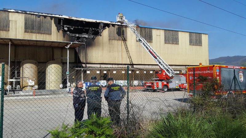La presencia de elementos químicos en la planta de decapado era el motivo principal de preocupación y control por parte de los bomberos, apoyados por efectivos de la Guardia Civil, Policía Local y cuerpo de Protección Civil de Los Corrales de Buelna, además de una unidad del 061 desplazada al lugar