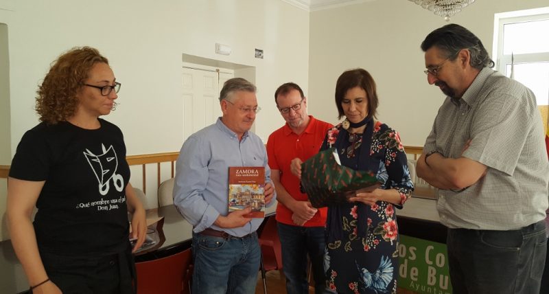 Indalecio Álvarez Campano, director de la compañía, quiso trasladar a las autoridades locales su cariño por el corraliego y su obra, reuniéndose con la alcaldesa, Josefina González, con la que departió, entre otras cuestiones, sobre la gran afición de los vecinos de la localidad por el teatro. No en vano hay una compañía profesional, dos amateur y una nutrida escuela municipal, además de las muchas personas que participan en las representaciones de la Fiesta de Interés Turístico Nacional de las Guerras Cántabras. De manos de Álvarez Campano la alcaldesa recibió varios presentes llegados desde Zamora. También participaron en el recibimiento el primer teniente de alcalde, Luis Ignacio Argumosa Abascal, casado con una zamorana, Isabel Arroyo, y el responsable de Cultura, Roberto del Val.