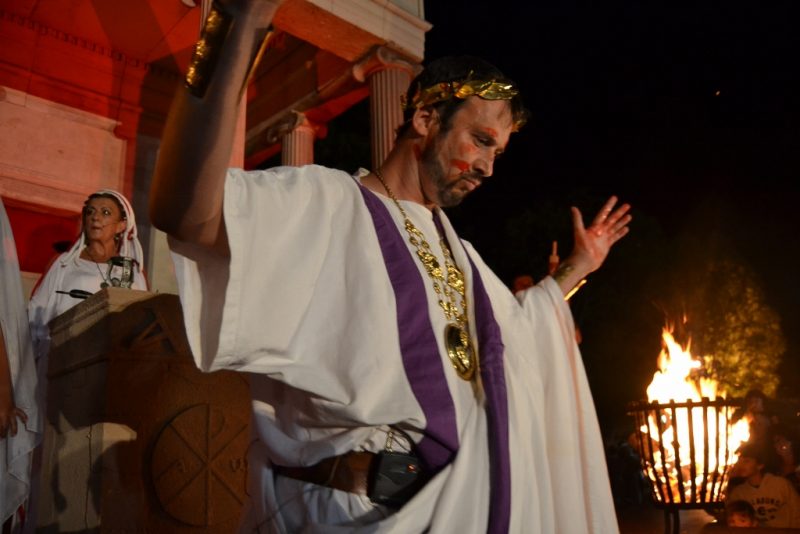 Tras la concentración de tribus y legiones, la pitonisa Selenia y la sacerdotisa Drusila encenderán el Fuego Sagrado, augurando tiempos de guerra y dando entrada al Circo Máximo a los personajes principales de la recreación histórica, desde Corocotta al César, diosas, druidas, generales y guerreros protagonistas de las Guerras Cántabras.