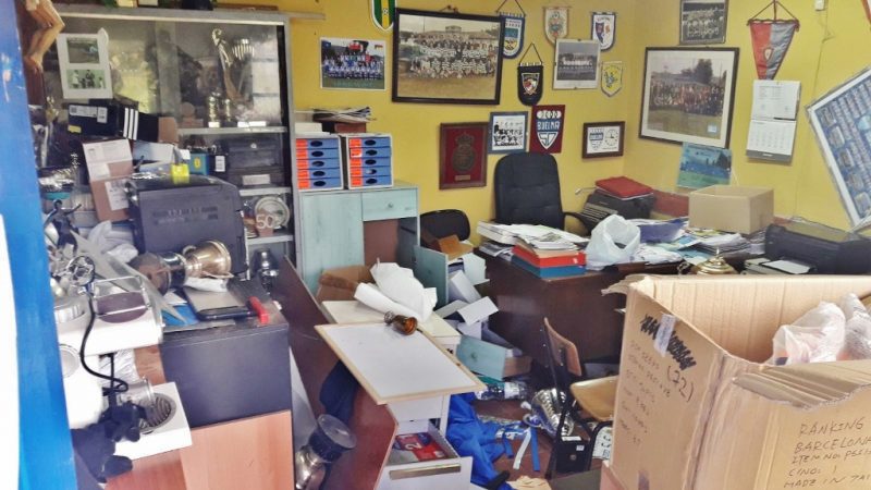 También la Policía Local se ha trasladado a algunos de los lugares afectados, como la oficina de la Sociedad Deportiva Buelna o una caseta donde el club Salla Indivisa Manent guardaba material deportivo. Ambos espacios están situados en el complejo municipal de deportes Luis Andrés Samperio. Además, en los despachos del Buelna se ha dañado distinto equipamiento como ordenadores o impresoras, junto a trofeos y mobiliario tirado por los suelos, la verja de protección del acceso arrancada y la puerta forzada.