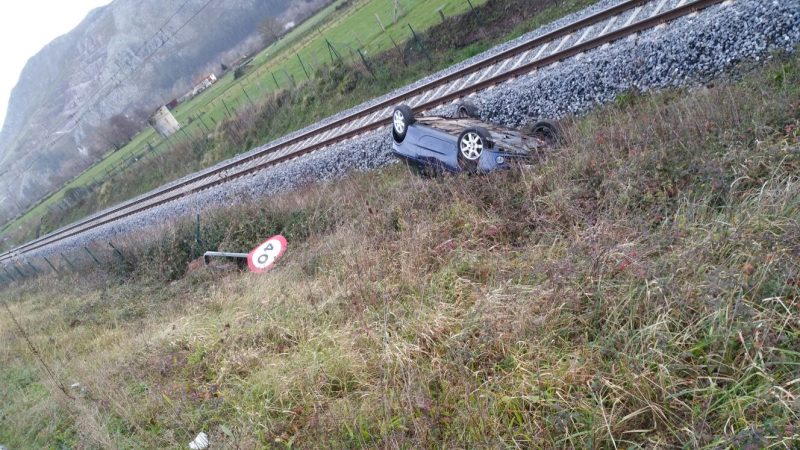Según nos ha informado la Policía Local de Los Corrales de Buelna, a las 9,34 horas de hoy miércoles un coche que circulaba en sentido Los Corrales, por el trayecto que comunica el polígono de Barros con la rotonda de acceso a Lombera, ha perdido el control cayendo por el terraplén para terminar volcado con las ruedas hacia arriba muy próximo a las vías del tren. Afortunadamente el único ocupante sólo sufrió heridas leves y fue trasladado por los agentes de la Policía Local al centro de salud. Posteriormente el vehículo fe retirado por una grúa.