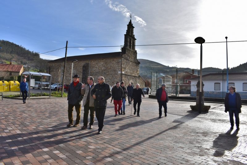 El titular de este departamento, José María Mazón, visitó junto a él ambas actuaciones, comenzando por Mata, donde a petición del Ayuntamiento se ha rehabilitado un espacio público bautizado ya como el Campo de los Salmones, "colocando un pavimento muy adecuado para el entorno de la iglesia y las casonas que conforman un conjunto muy agradable". Sobre el terreno ambos comprobaron que hay algún remate pendiente de acometerse, como el cierre de la plaza en paralelo a la carretera o la señalización en el pavimento de un reloj de sol para el que el gnomon o estilo será una farola colocada junto a una fuente centenaria.