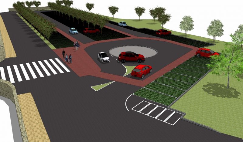 El proyecto está diseñado por dos ingenieros corraliegos, Emilio Báscones Soto y Miguel Pérez Fernández, y prevé 122 plazas de aparcamiento, 114 para automóviles, dos para discapacitados y seis para motos. Pero una de las cuestiones más curiosas del proyecto es que dispone de una rotonda de 10 metros de diámetro que servirá para realizar la hoguera de San Juan. Por eso, en 20 metros a la redonda de esa rotonda no se plantará ningún árbol ni se dispondrá de alumbrado, para poder establecer el cordón de seguridad en la noche principal de las fiestas patronales de Los Corrales de Buelna. En base a esa hoguera, en el centro de la rotonda habrá una inscripción en el hormigón que rezará 'El verano ya ha llegado / se marchó la primavera / y con ella se ha de ir / todo lo malo en la hoguera'.