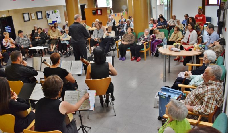 El viernes actuó la Agrupación de Pulso y Púa Fresneda a mediodía y la tarde del sábado fue la cantante cántabra Coco Cisneros la que actuó para residentes y familiares.