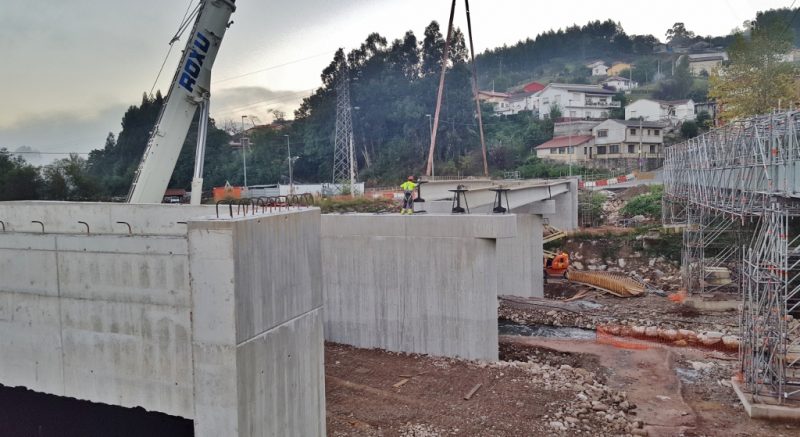 A ocho semanas de tener que abandonar el cauce del río, la empresa que construye en Los Corrales de Buelna el nuevo puente Renero ya ha comenzado la colocación de las vigas que soportarán la plataforma principal de esa estructura. De momento los plazos se van cumpliendo y se prevé poder abrir el viaducto al paso a principios de diciembre, en ese momento quizá solo para peatones. El 30 de noviembre las máquinas tendrán que abandonar el cauce del río Besaya por mandato de la Confederación Hidrográfica del Cantábrico, con lo que todo lo que haya que hacer en la base del viaducto o que requiera grandes grúas, como está siendo el caso de la colocación de las vigas, tendrá que estar terminado para esa fecha. Y en principio también para esa fecha tendrá que desmontarse la pasarela provisional que ha permitido hasta ahora el paso por ese punto de peatones y ciclistas, conexión principal de los vecinos del barrio de Penías con el centro de Los Corrales de Buelna.