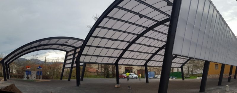En unos días el pueblo de Barros podrá estrenar dos nuevas cubiertas, una obra acometida por la empresa Rotedama que ha venido a cambiar la imagen de lo que era una gran plaza pública sin urbanizar que se utilizaba poco más que para aparcamientos y celebrar las fiestas locales, que ahora no tendrán que estar a expensas de la lluvia. Tras levantar dos cubiertas, una para un parque infantil y la otra mayor para el resto de la plaza, instalar el alumbrado y asfaltar todo el suelo, ahora se está urbanizando el entorno como remate de un proyecto que se adjudicó en 296.610 euros.