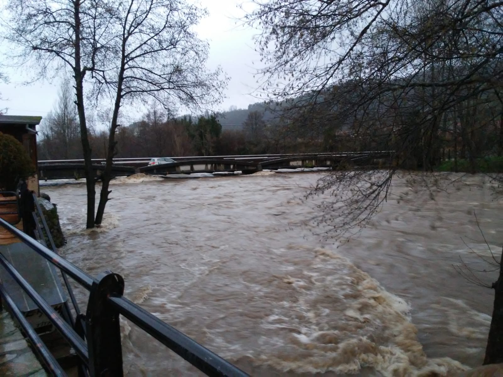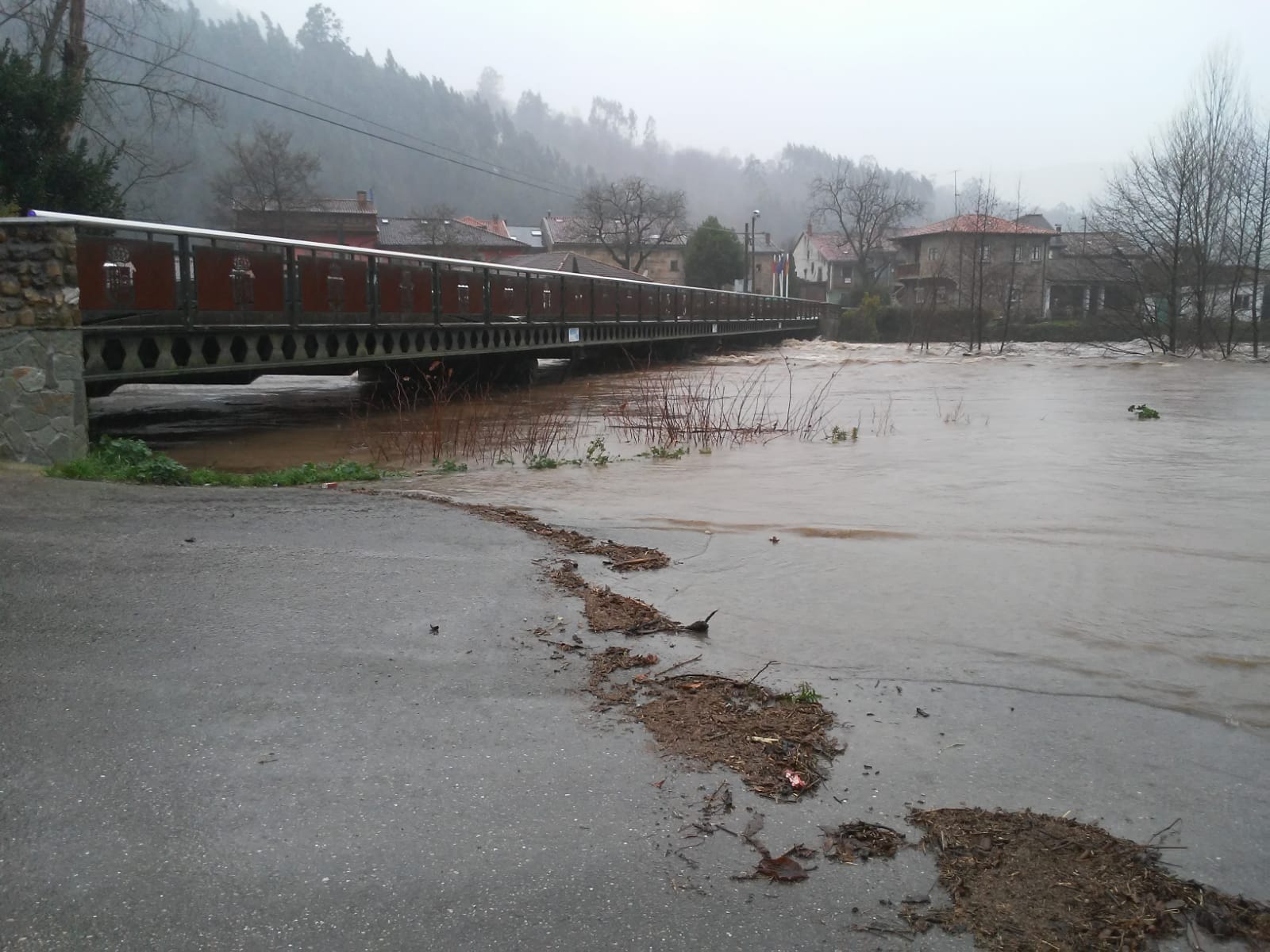 La carretera N-611, a la altura de la Media Hoz, curva de El Manco, corre riesgo de ser inundada por la crecida del Besaya, al igual que la Nacional 611 entre Baros y el túnel de Las Caldas. También el puente que une Somahoz y San Andrés tiene ya muy cerca el nivel del agua y el cauce ha cubierto el aparcamiento situado entre el río y las vías del tren, en ese mismo punto.