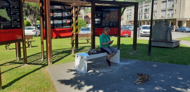 Se ha colocado intencionadamente al abrigo de una pérgola que contiene información sobre la riqueza patrimonial de Los Corrales de Buelna, artística, natural, festiva o arquitectónica. Unos paneles que incluyen un código QR para incrementar la información que ya de por sí ofrece esa pérgola. Y nada mejor que tener una conexión a internet en el lugar para mejorar esa prestación, como señaló la alcaldesa.