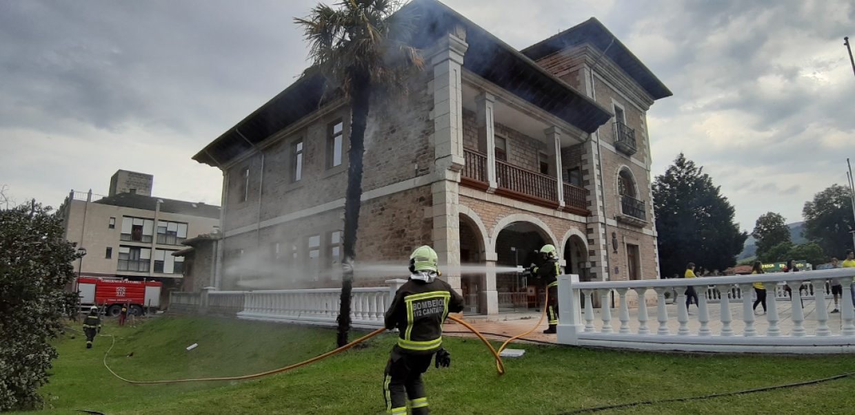 Sobre las siete y media de la tarde, por lo que han señalado algunos testigos, un grupo de jóvenes prendió fuego a la palmera que escolta la entrada principal de la Casa Consistorial de Los Corrales de Buelna, en el parque Mazarrasa. Un parque que en ese momento tenía una importante afluencia de público ya que se habían instalado en esa zona las atracciones de feria de las fiestas patronales de San Juan.