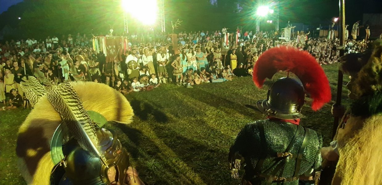 De ahí, personajes, festeros y visitantes se trasladaron al cercano campamento, para asistir a la espectacular apertura de las puertas del Templo de Jano, estructura levantada a tamaño natural en ese gran parque temático del siglo I adC.