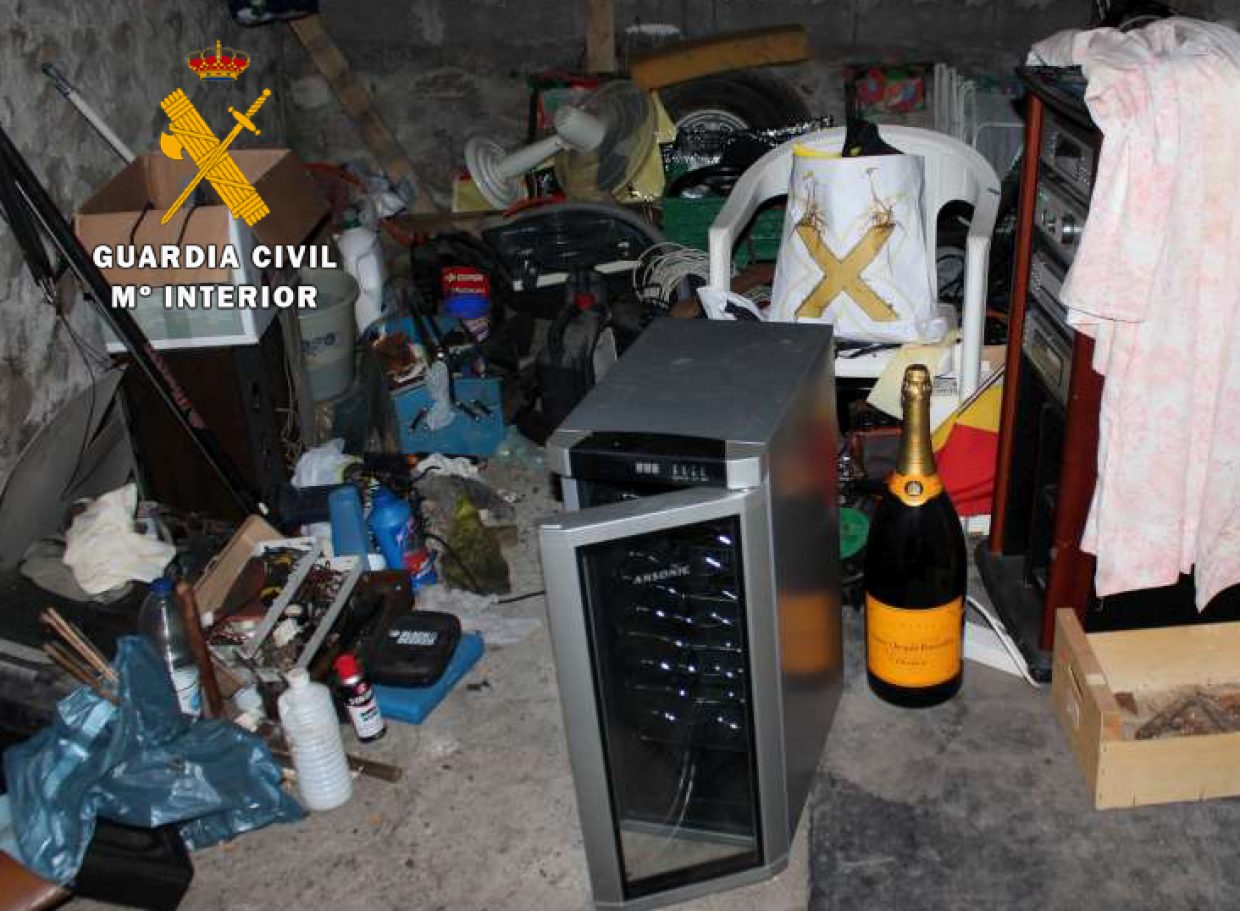 Una vez en el interior de la vivienda, pudieron comprobar que la habían desvalijado, robando una gran cantidad de objetos distribuidos por toda la casa y el garaje. Bienes tan dispares como un televisor, un casco de moto, una cubertería de plata en su estuche, una vajilla de té, el motor y remolque de una zodiac, una mini cadena, una videoconsola, una aspiradora, un enfriador de botellas una botella de champán grande, herramientas variadas y un machete entre otros.