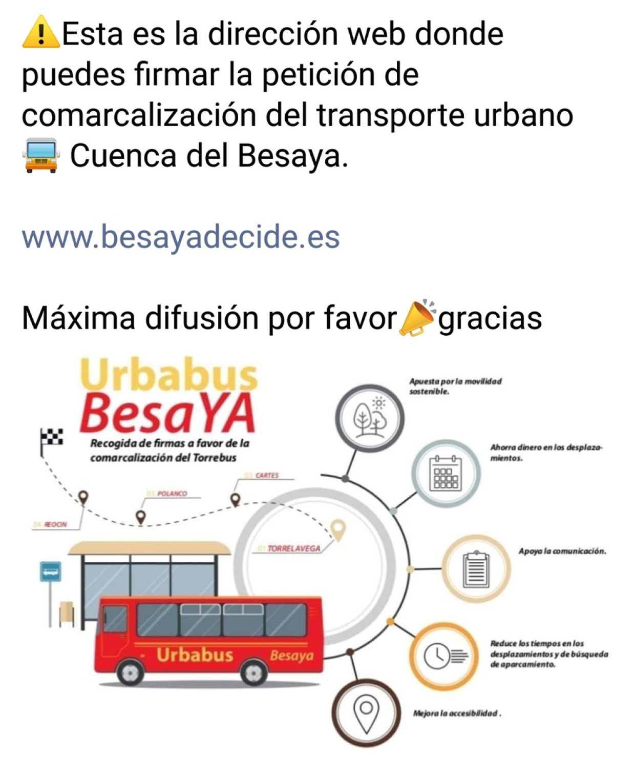 En la página se apuntan los cinco motivos de la iniciativa, el compromiso con la movilidad sostenible y la mejora de la rentabilidad del Torrebús por un lado, la mejora de la movilidad laboral y la conciliación familiar por otro, la mayor accesibilidad a centros hospitalarios, estaciones o edificios educativos, la optimización en los tiempos de desplazamiento y búsqueda de aparcamiento y, por último, la comunicación entre municipios en pos de la reactivación económica de la comarca del Besaya.