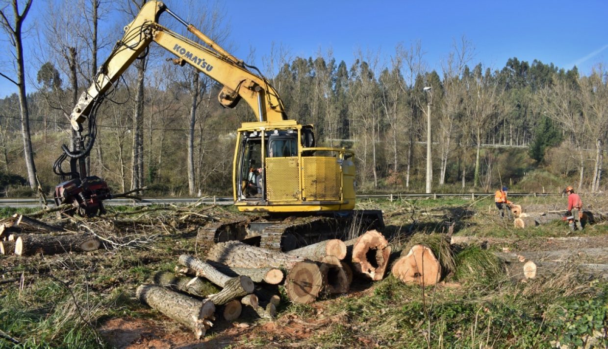 En pie quedan otra decena de chopos, al otro lado de la vieja carretera, que también se prevé eliminar por el riesgo que suponen sobre el lavadero de una estación de servicio.