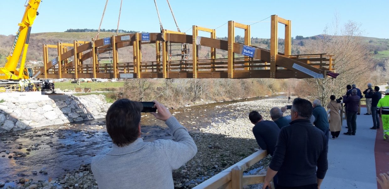 Con él estuvo el alcalde de Arenas de Iguña, Pablo Gómez, inasequible al desaliento a pesar de los muchos problemas encontrados en el camino. Recordó que ha sido un «largo periplo, en el que, si no la vuelta al mundo, si se ha dado la vuelta a Europa prácticamente» para conseguir la madera que exigía el pliego de condiciones, y el tratamiento contra la humedad que había que dar a esa madera. Una especificación tan concreta que, según explicó Pablo Gómez, ha retrasado mucho la consecución del proyecto. «Por fin se ha conseguido y ya es una realidad, una pasarela que dará mucho servicio a los vecinos, especialmente a los mayores, que son muchos en esta zona, y aportará un impulso turístico a todo el valle».