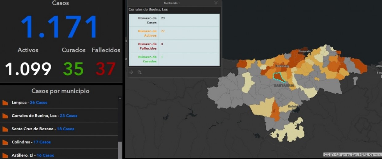 El Servicio Cántabro de Salud no ha registrado ningún fallecido por Covid 19 en Los Corrales de Buelna ni en ningún municipio del entorno. De momento hay 23 casos positivos contabilizados en Los Corrales, 22 activos y una persona curada. La media, con respecto a los municipios más poblados de Cantabria es similar, aunque registra menos que otros semejantes como Santoña (41) o Reinosa (37).